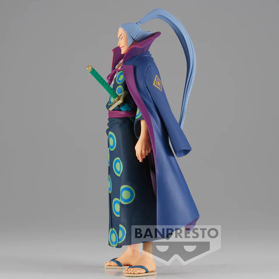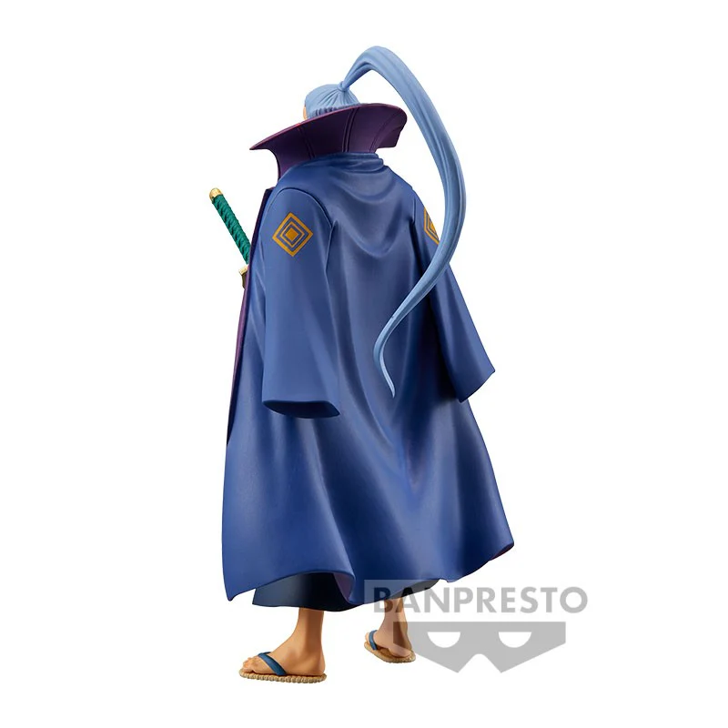 Denjiro - THE GRANDLINE MEN EXTRA - DXF mang đến hình ảnh vị samurai tài hoa của Wano với khí chất trầm tĩnh và thần thái đầy quyền uy. Figure thể hiện Denjiro trong bộ kimono xanh họa tiết tròn đặc trưng, khoác ngoài là chiếc áo choàng tím biểu trưng cho sự trung thành và uy dũng. Từng chi tiết khuôn mặt, mái tóc búi cao, đến thanh kiếm đeo bên hông đều được Banpresto khắc họa cực kỳ tinh tế, tái hiện chuẩn phong thái kiếm sĩ Wano. Một mẫu figure hoàn hảo cho những ai yêu thích arc Wano và muốn bổ sung vào bộ sưu tập Cửu Hồng Bao.