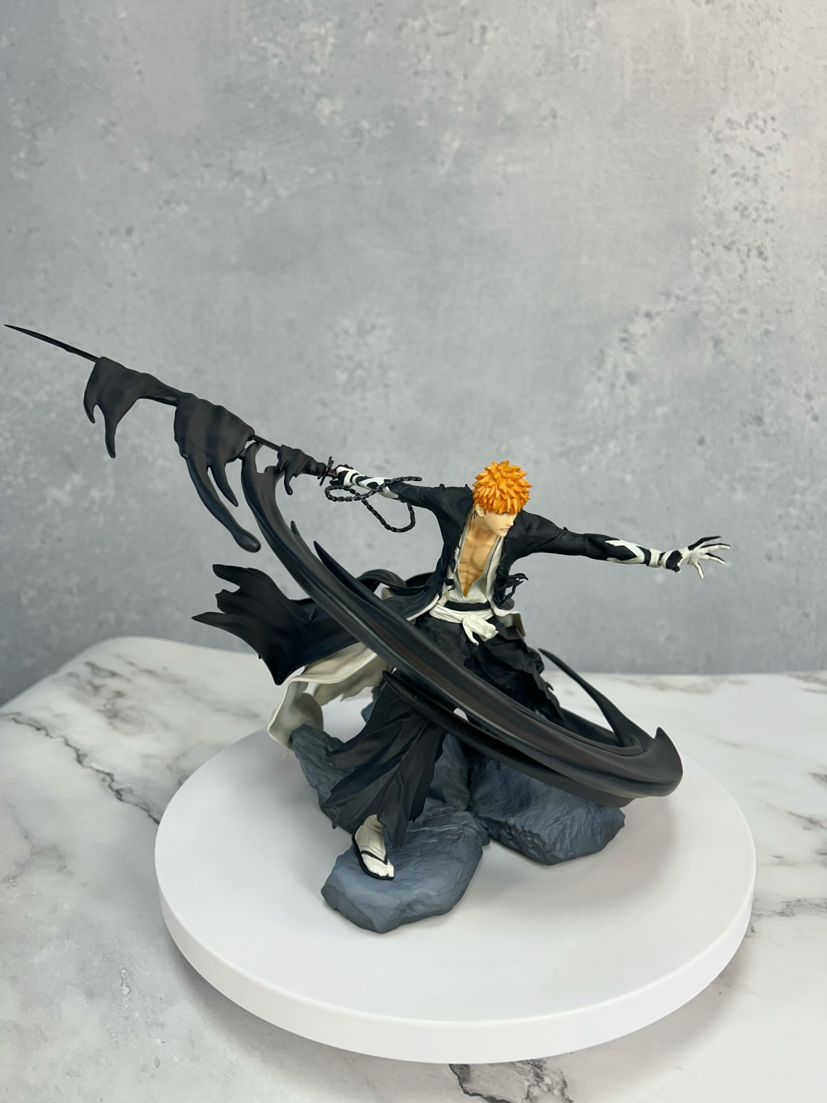Mô hình Kurosaki Ichigo - Figuarts Zero - Bleach tái hiện Ichigo trong tư thế chiến đấu mạnh mẽ, với hiệu ứng hắc khí xoáy quanh người cực kỳ ấn tượng. Trang phục rách nhẹ cùng ánh mắt quyết liệt thể hiện hoàn hảo tinh thần chiến binh của Shinigami. Thiết kế chi tiết, màu sắc chân thực và tư thế động giúp sản phẩm nổi bật trong mọi bộ sưu tập Bleach.
