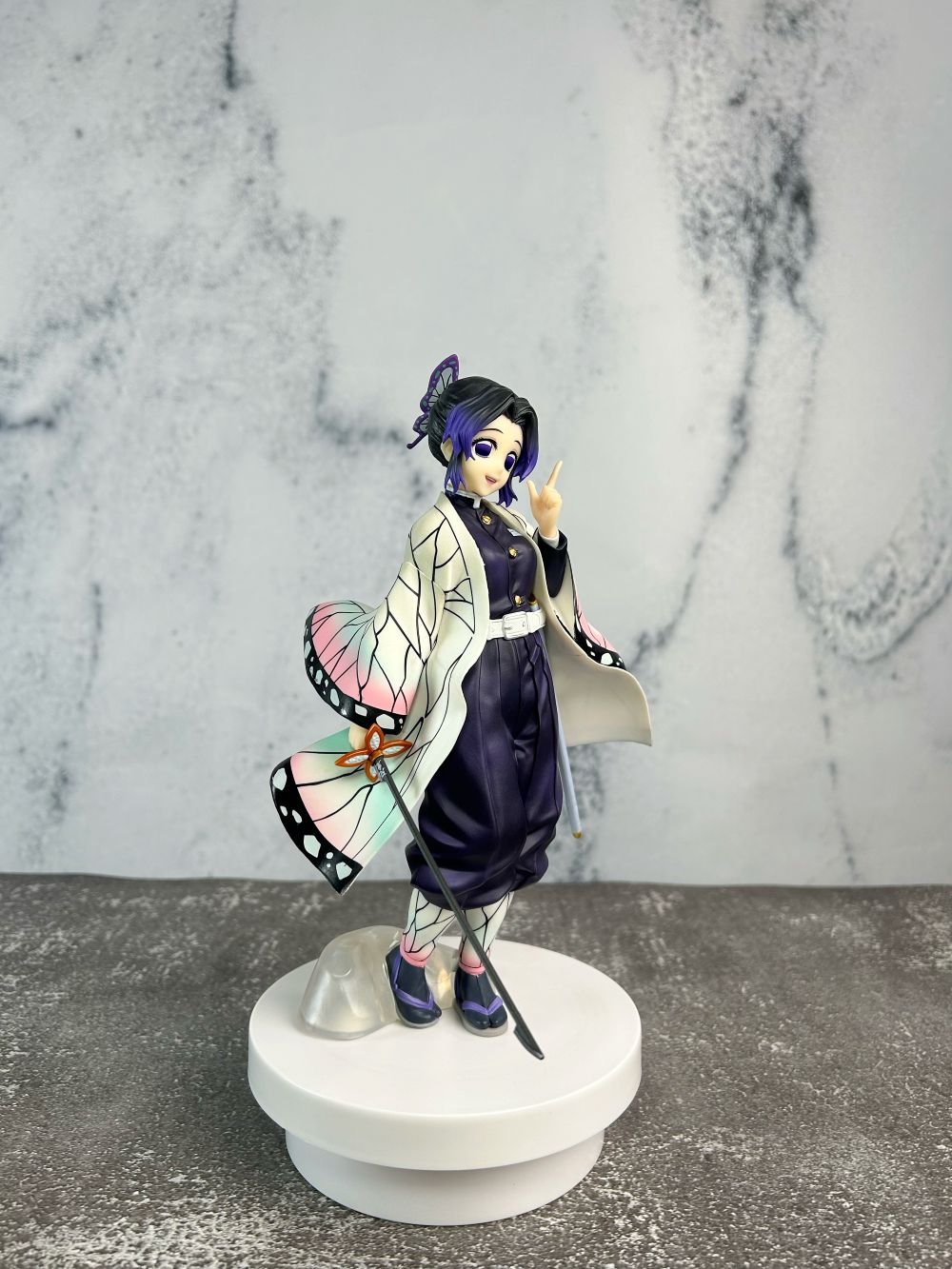 Phiên bản thuộc Ichiban Kuji do Bandai Spirits sản xuất nổi bật với lớp áo haori hoa văn cánh bướm mềm mại, nụ cười điềm tĩnh đặc trưng và tạo dáng nhẹ nhàng nhưng toát lên khí chất của một Hashira thực thụ.