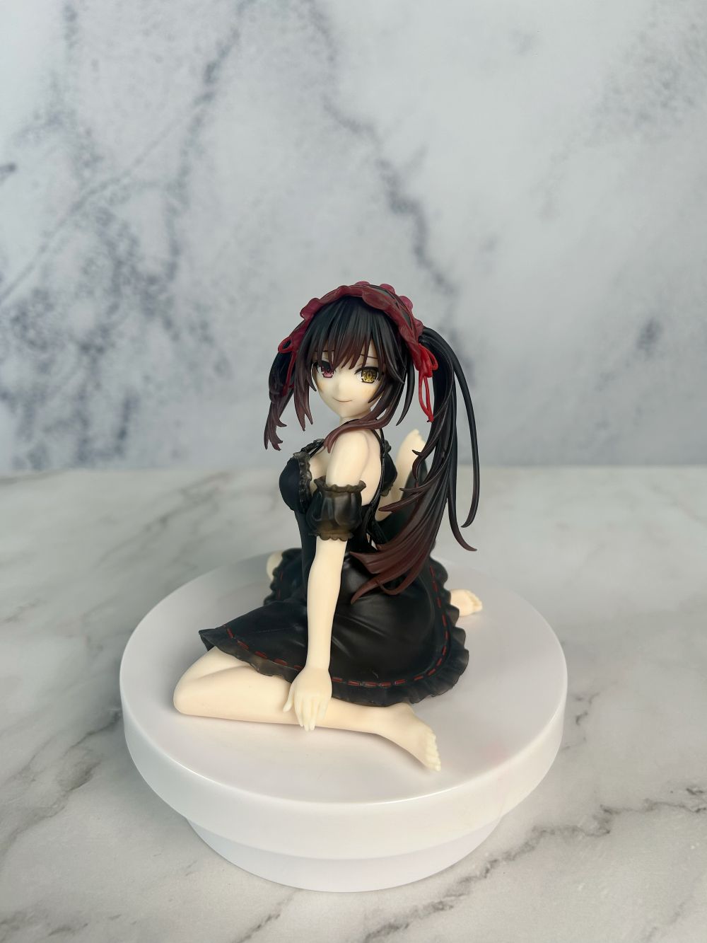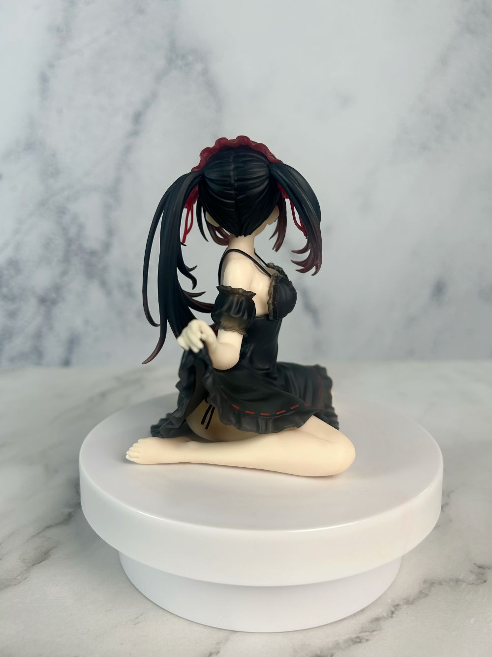 Tokisaki Kurumi – Nightwear ver – Desktop Cute – Date A Live V (Taito) mang tạo hình ngồi nhẹ nhàng trong váy ngủ đen viền đỏ, tôn nét quyến rũ kín đáo của Kurumi. Dáng pose thư giãn kết hợp ánh mắt đặc trưng và mái tóc twin-tail tạo cảm giác mềm mại, rất hợp trưng bày kệ sáng. Thuộc dòng Desktop Cute, mô hình nhỏ gọn, dễ đặt bàn làm việc hoặc kệ figure.