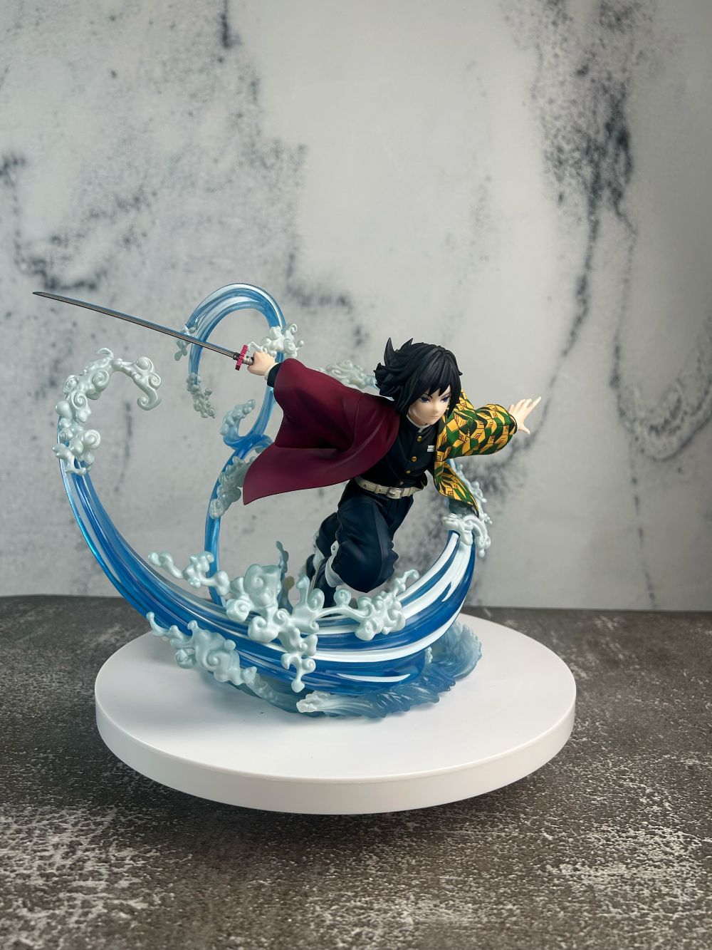 Figure cao cấp từ Aniplex gây ấn tượng mạnh với chi tiết chuyển sắc của hiệu ứng nước trong suốt, tạo cảm giác dòng chảy xoáy quanh Giyu đầy uy lực.