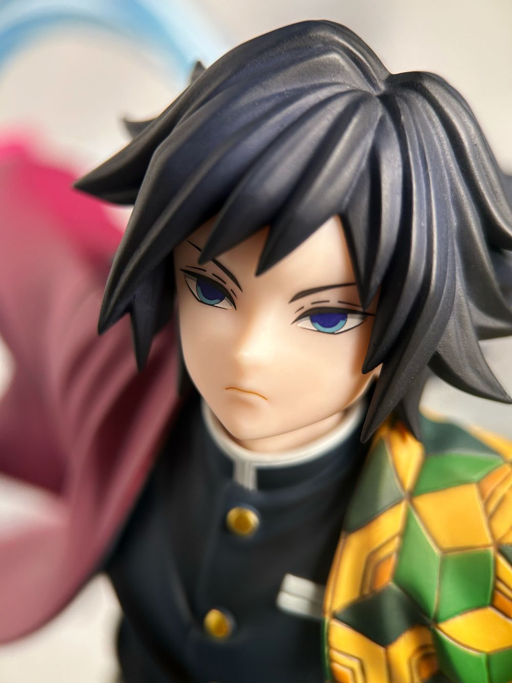 Bộ haori hai họa tiết đặc trưng được làm sắc nét từng mảng màu, tông áo xanh trầm kết hợp cùng biểu cảm lạnh lùng tạo nên khí chất điềm đạm đặc trưng của Tomioka Giyu. Tư thế chiến đấu dứt khoát, bệ nước tinh xảo và đường kiếm sắc lẹm khiến figure trở thành điểm nhấn nổi bật trong mọi bộ sưu tập Demon Slayer.